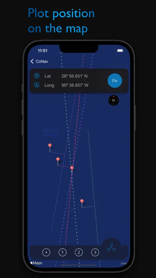 A function is available for mapping the lines of position and the calculated position of the vessel.