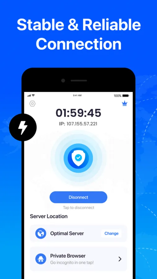 VPN app for iPhone and iPad is the fastest and most trusted VPN to protect your online privacy from getting compromised. It provides data security by encrypting your network connections and shielding you from cyber threats, identity thieves, snoopers, and advertisers.