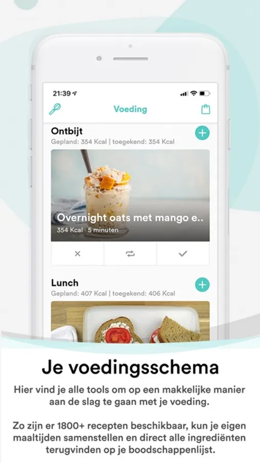 Je persoonlijke voedingsschema wordt voor je klaar gezet en daarnaast vind je alle tools om hier op een makkelijke manier aan de slag. Zo zijn er 1800+ recepten beschikbaar, kun je eigen maaltijden samenstellen, maaltijden wisselen en direct alle ingrediënten terugvinden op je boodschappenlijst. Zo word jij totaal ontzorgd!