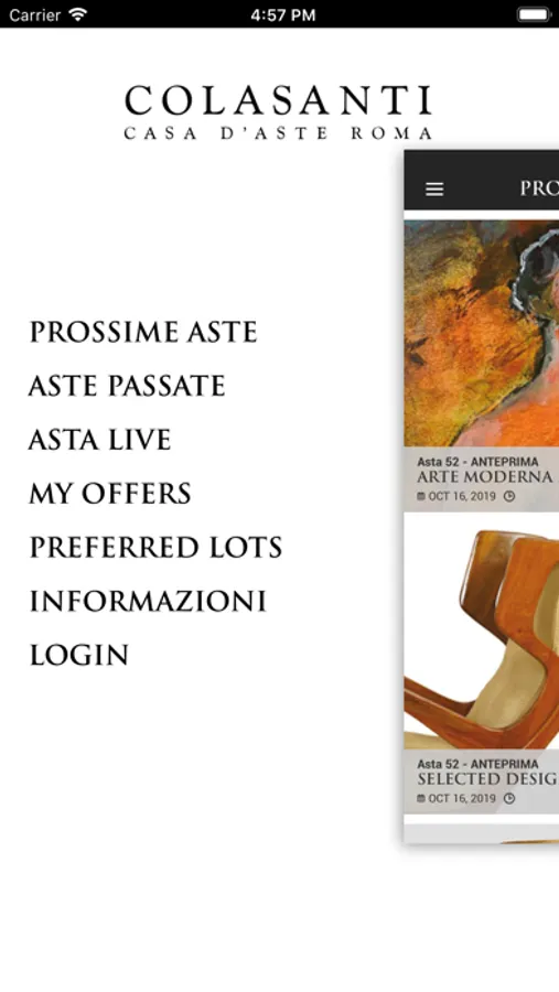 La Colasanti Casa d'Aste si occupa della vendita di oggetti d'arte, arredi, dipinti antichi, moderni e contemporanei, argenti, gioielli, orologi, arte orientale, design e tappeti, valutando e selezionando anche intere collezioni private.