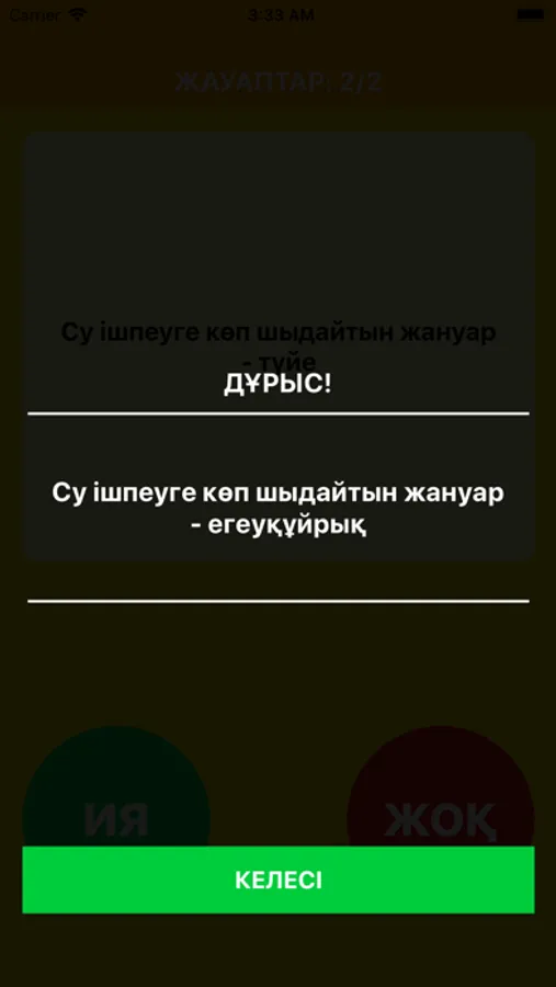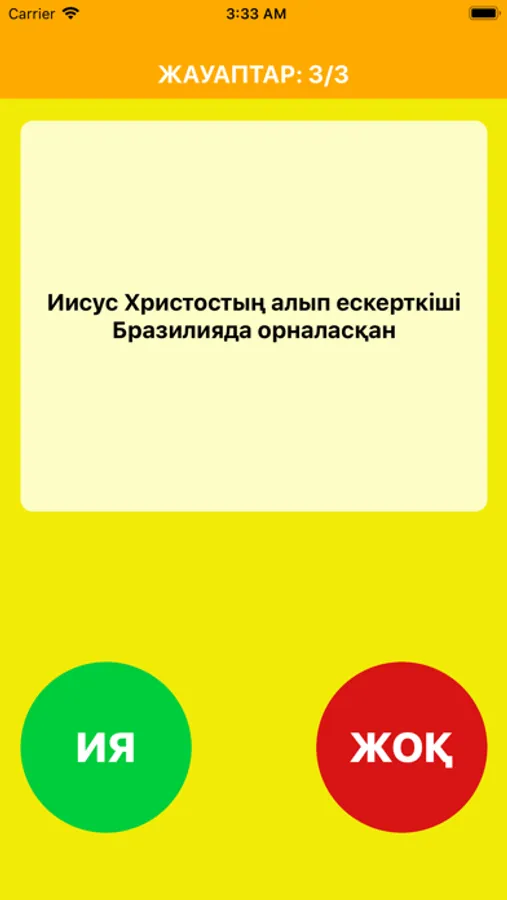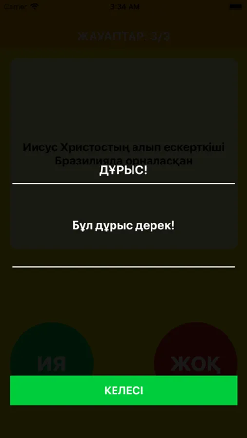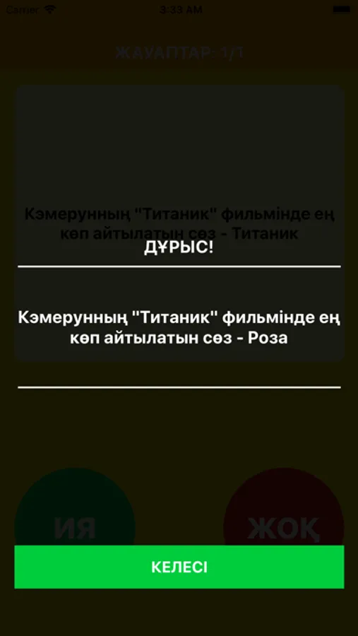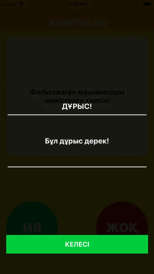 Сізге кездейсоқ 20 сұрақ беріледі, олардың дұрыс немесе дұрыс емес екендерін анықтаңыз. Әртүрлі салаларға байланысты сұрақтар бар, дұрыс жауап бере аласыз ба? География, кино, спорт және басқа да қызықты сұрақтар бар. Өз біліміңізді тексеріп көріңіз