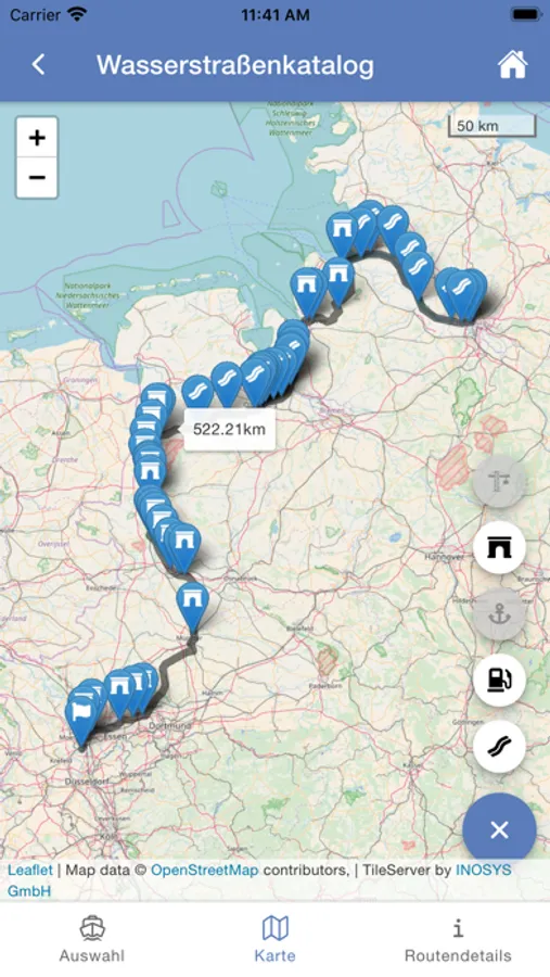 Informationen über aktuelle Routen auf den Wasserstraßen.