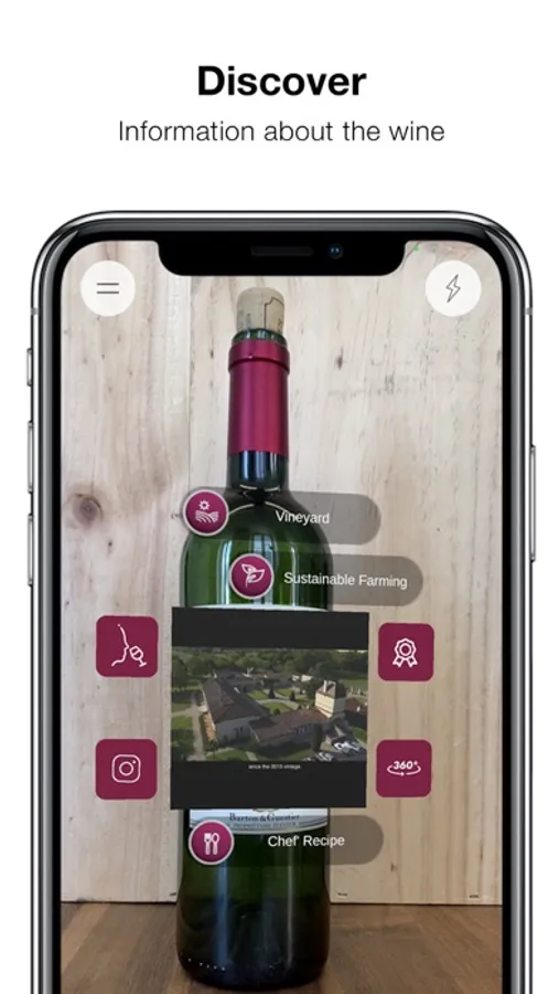 SMARTBOTTLE est l’application de référence des professionnels du vin : outil de communication innovant pour les producteurs, il permet aux clients d’en découvrir davantage au sujet des vins qui les intéressent, simplement en scannant la bouteille avec l’appareil photo de l’application. En un geste simple, ces informations sur un vin, un domaine ou un producteur apparaissent grâce à nos technologies en Réalité Augmentée.