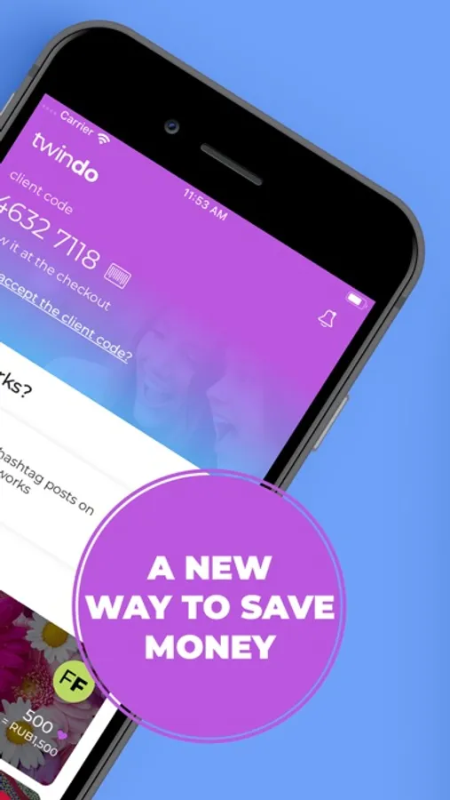 In the «Twindo» application, you are assigned a unique customer code, show it when paying for a product or service (the customer code can be displayed as a barcode by simply clicking on it), likes will be credited to the account of the selected product.