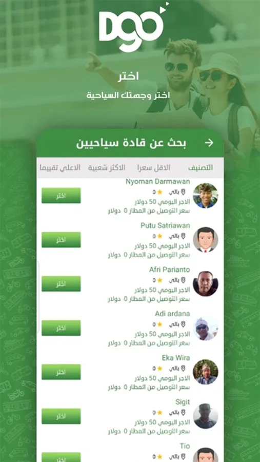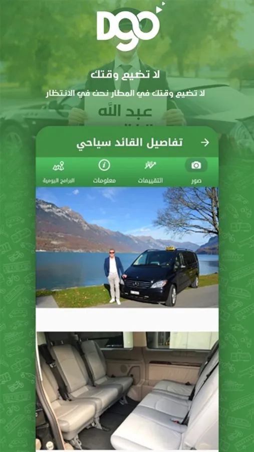 تطبيق دي جو "Dgo tour" منصة الكترونية توفر للسائح الكريم الحجز المسبق للسائق أو المرشد السياحي ، للجولات السياحية اليومية والتوصيل والاستقبال من المطارات في وجهات سياحية متعددة بما يتناسب مع ذوق واحتياج العميل لجميع أنواع السيارات.