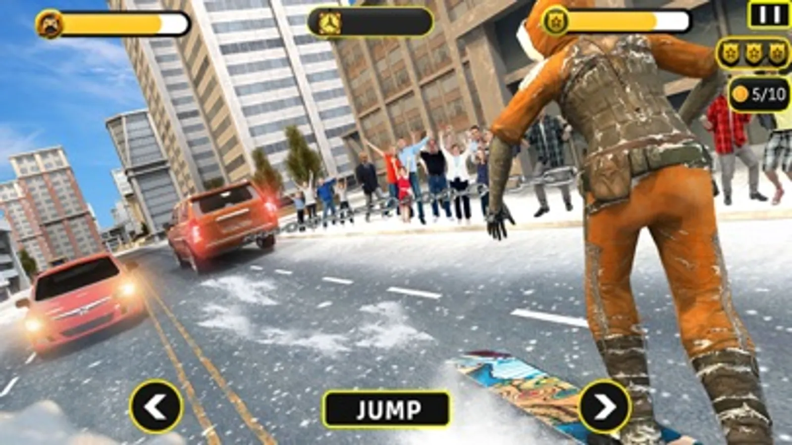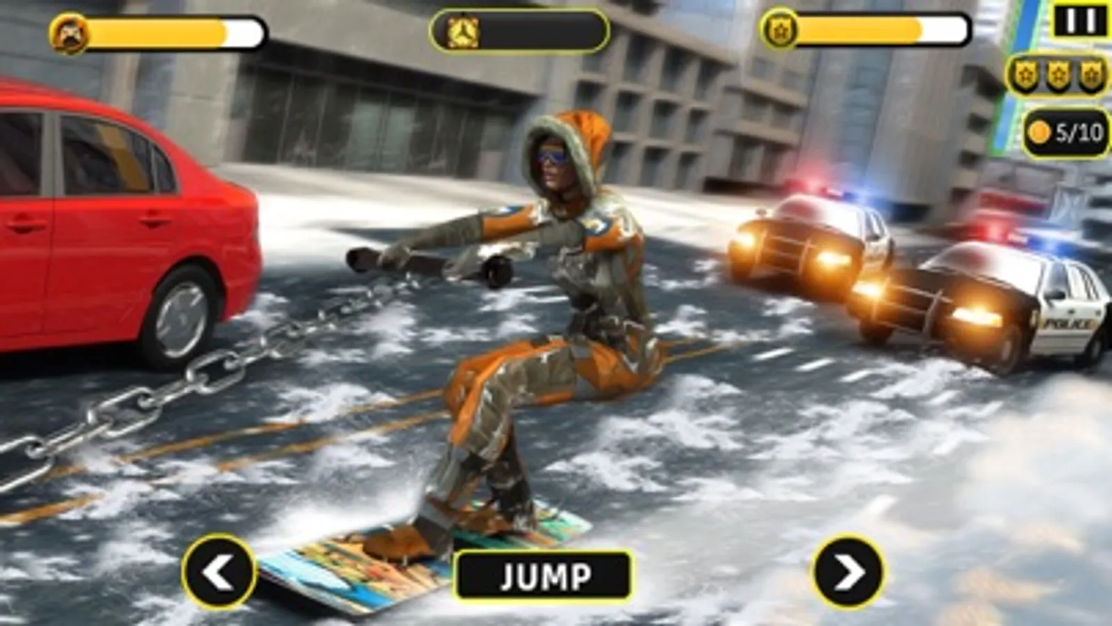 Compete with nypd, Avoid police car Pursuit to collect batchs for Power ups and rescue from police cars. Collect coins get the highest score and Do, slides, flips, grabs, on steep snow slopes. Execute the craziest combos and extreme trick sequences to rack up some impressive high scores, gain experience of true skate boarding.