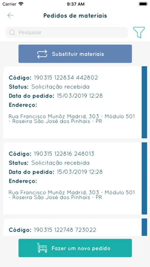*Substituição de materiais;