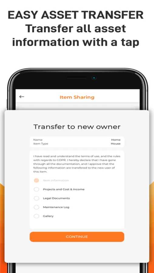 Never lose your data: With the help of our cloud storage, you will never lose any of your data. You can also receive data from other accounts via a simple transfer and can share the data with your spouse, fellow owners and accountants etc. If you sell an asset, you can even transfer the data to the new owner with a single click.