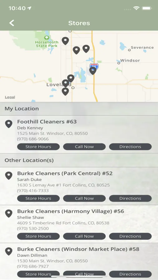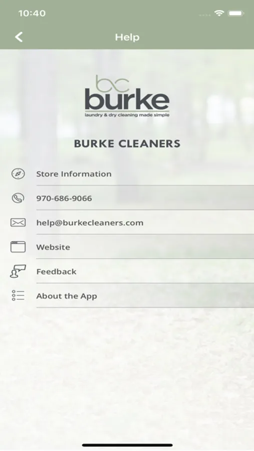 5) Quickly contact Burke Cleaners by phone or email and access their website all directly from your device.