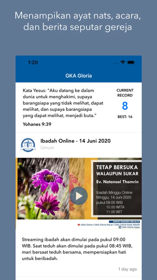 Melalui aplikasi ini, GKA Gloria memberikan informasi berita dan acara seputar gereja, sekaligus bahan untuk bersaat teduh. Anda akan selalu up-to-date dengan apa yang Tuhan lakukan di GKA Gloria.