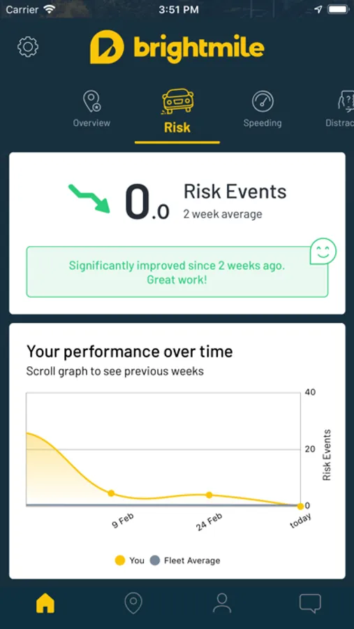 Brightmile is an app that uses the sensors in the iPhone or iPad to automatically detect driving trips and to assess and coach drivers on a single easy to understand Score and the ‘Five Pillars’ of driving behaviour (Risk, Speeding, Distraction, Fatigue, and Eco).