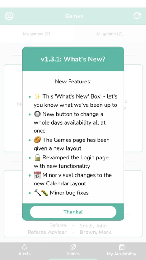 This version of the App will provide you with the key information regarding games, access to a personal availability calendar and contact details in your group.