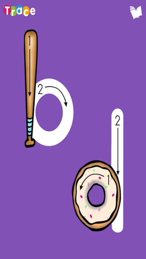 4. Letter Reversals - The last section of the app includes activities for the four most common letter reversals: b, d, p, and q. Learners use pieces to build each letter, trace each letter three times, compare the letter to the letter that is often confused with it, and recognize the letters as they work through the mazes. Visuals are included to help learners remember what each letter looks like.