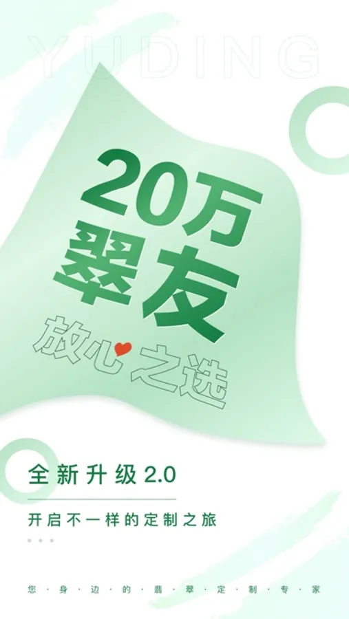 玉定,国内领先的翡翠定制平台,您身边的私人定制专家,12年品牌信誉保障,20万+翠友的信赖选择,致力于为翠友提供最佳的定制体验感和参与感,做融合客户情感的好翡翠。没有中间商赚差价,自己切料,玉雕名家专属定制,直达客户手中。
