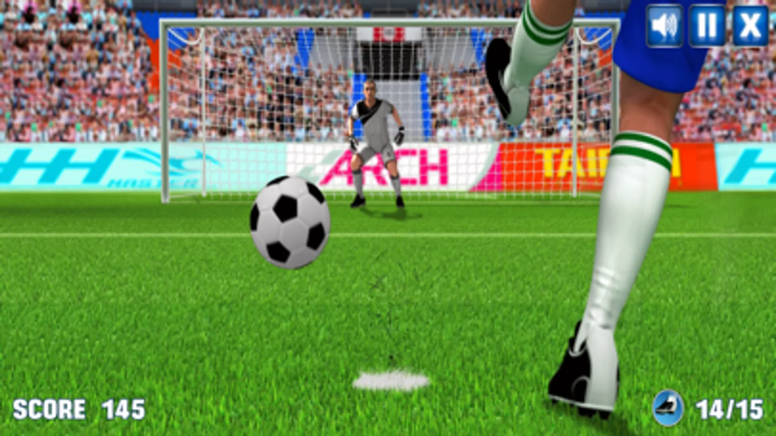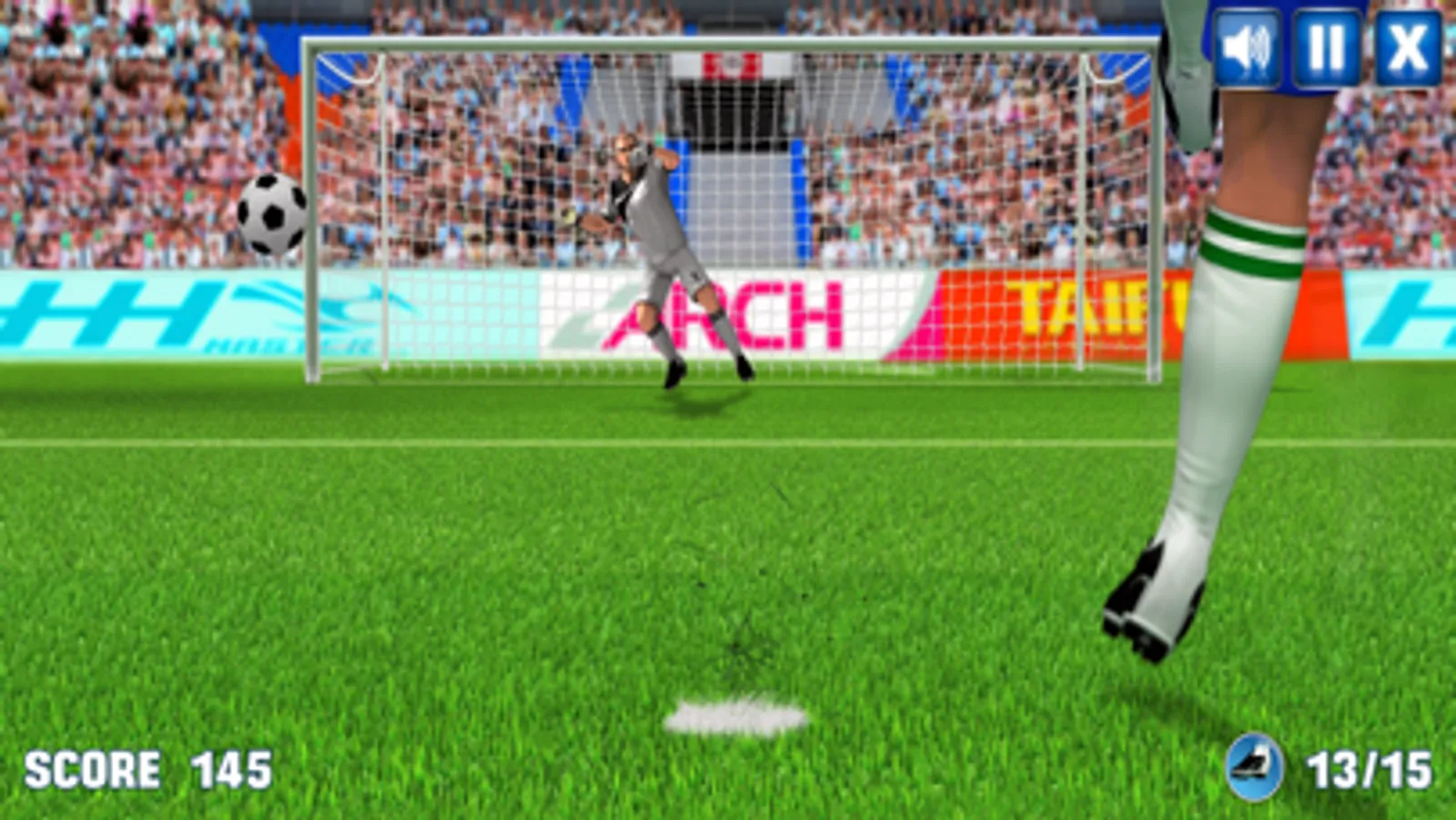 Football penalty kick is an amazing soccer game. Aim and swipe your finger to shoot the ball and make spectacular goals. Kick your way through every penalty shootout situation like a champ. You have ten attempts to score as many goals as you can. Swipe to make spectacular goals!