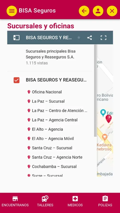 Esta es una aplicación móvil de carácter público y de utilidad para todos nuestros asegurados de BISA Seguros, que les permite efectuar una serie de funciones en línea, como consultar las sucursales y oficinas de atención al cliente, talleres, médicos y clínicas, consulta de pólizas suscritas, impresión en formato PDF y pago de primas pendientes en línea.