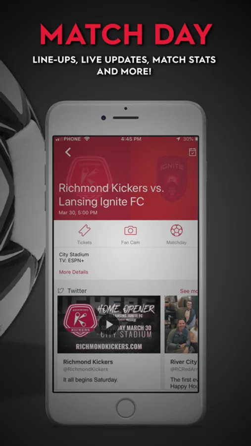 Access the team schedule, view player updates, watch the best highlights and get prepared for matchday with your favorite USL club: Richmond Kickers.