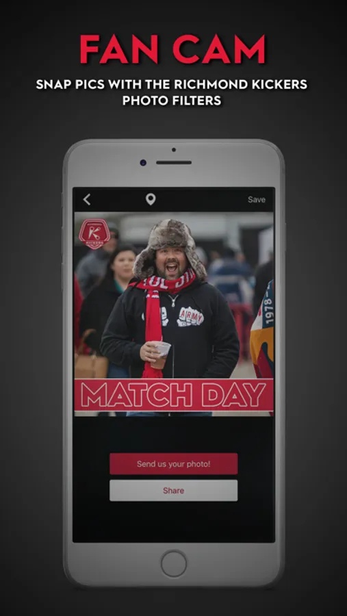 • Take matchday photos using custom overlays in FanCam, which lets you share your photos with the team and post directly to your social accounts