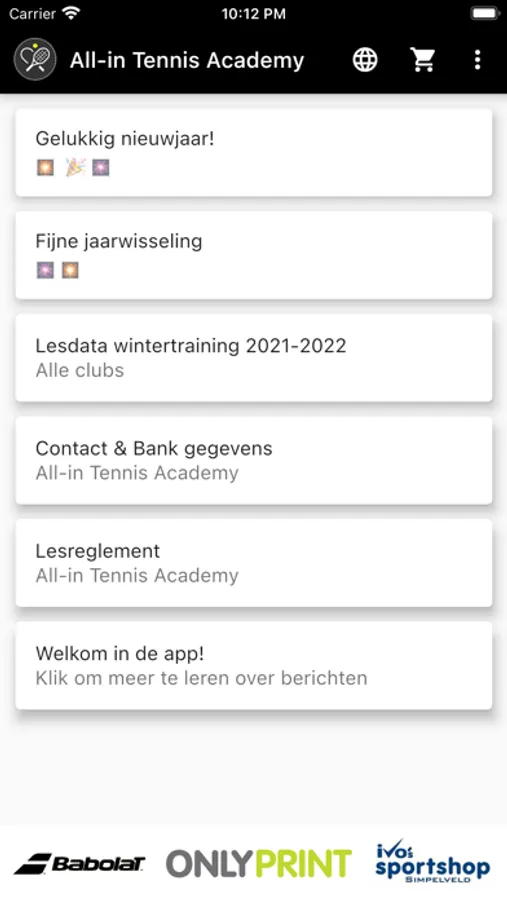 Met de All-in Tennis & Padel Academy app blijf je altijd up-to-date door het ontvangen van notificaties en het kunnen lezen van berichten.
