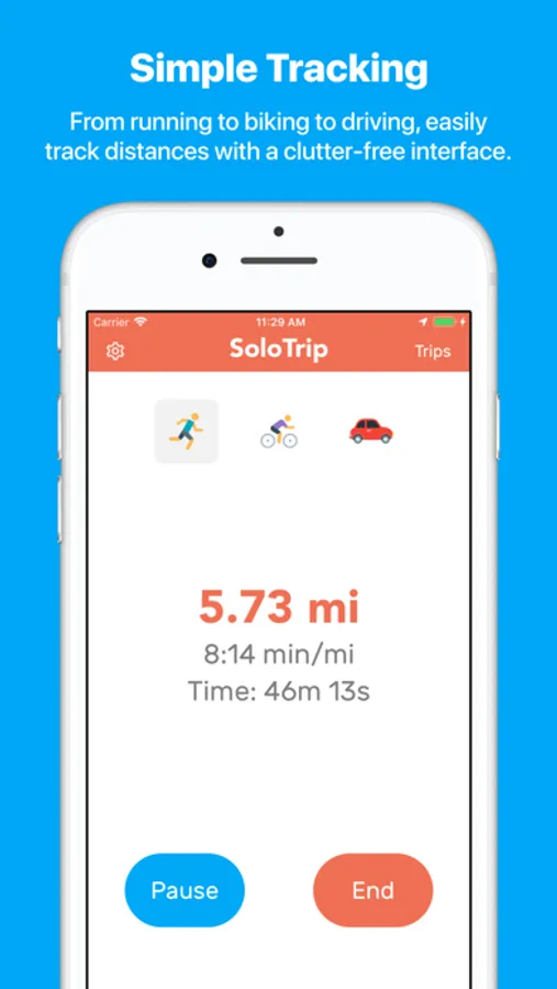 Solo Trip is a no-frills distance tracker that focuses on the essentials. Also supports tracking in kilometers!
