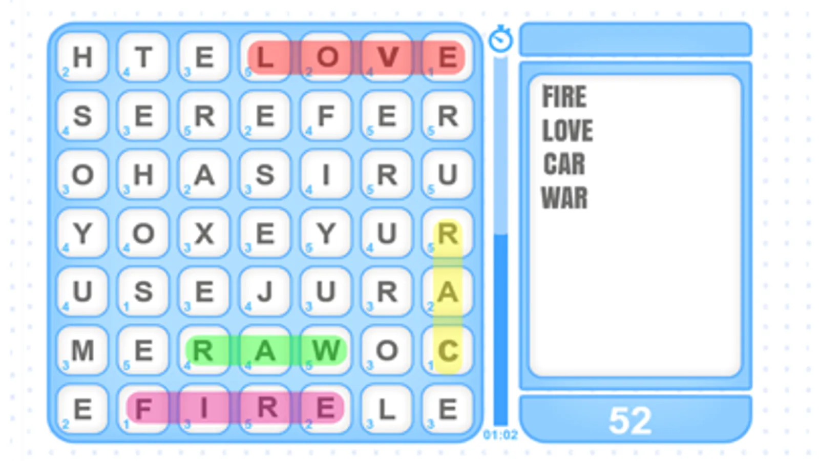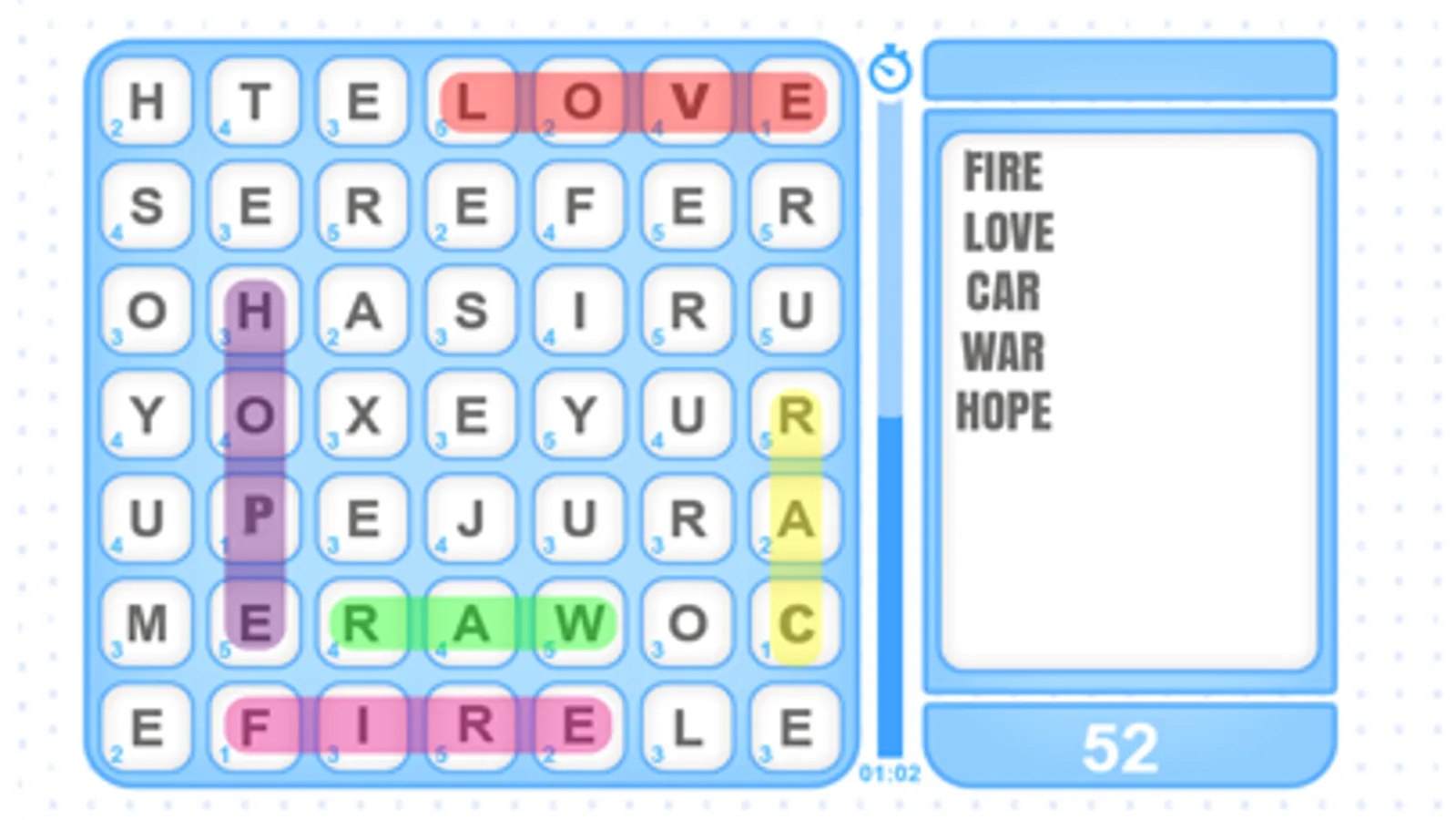 Word Compile is a word game to challenge your vocabulary. On each freeboard, a large grid of letters will be presented where you have to find as many words as possible, Simply drag your finger on a letter sequence on any direction and form valid words. Search and find all the words hidden in the grid. Swipe the letters horizontally, vertically, diagonally, forwards or backward to form a specific hidden word. You can also play in other languages besides English, such as Portuguese, Spanish and French.