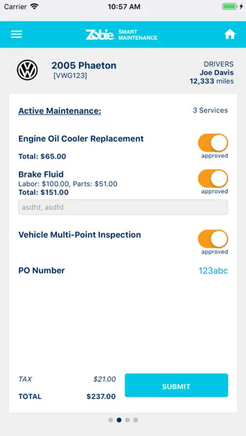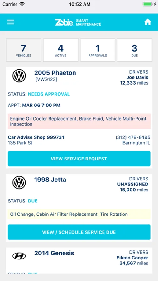 Zubie Smart Maintenance allows users to manage maintenance of their vehicles and track service history.