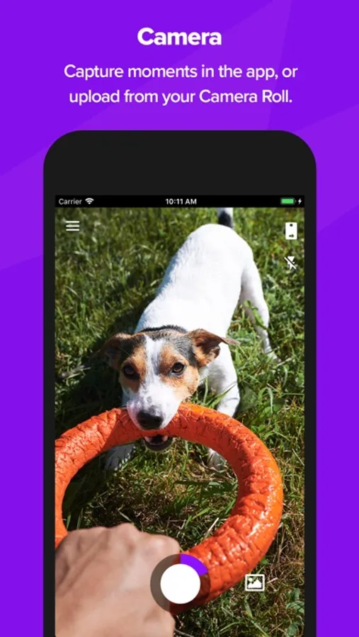 • Camera. Record video & take pictures right from within the app, or upload from your Camera Roll.