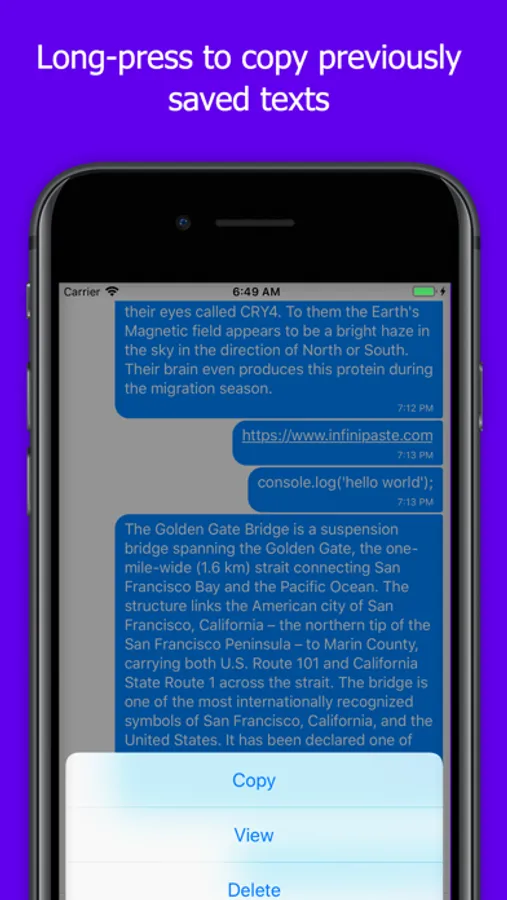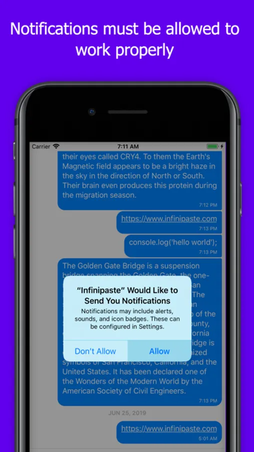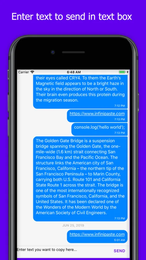 Infinipaste accomplishes all these and more. Once installed, Infinipaste allows you to copy paste to and from any other device it's installed on. Want to send iOS to Windows? We support it. Android to iOS? We support that too. In fact, you can send any combination of Android, iOS, MacOS, Windows, and Linux.