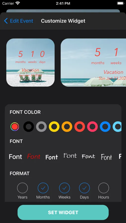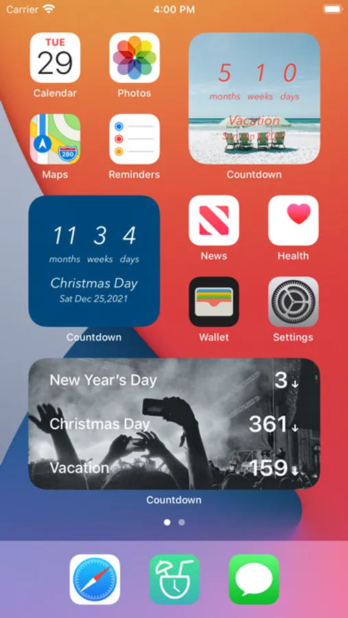 Count down to your next event: Vacation, Birthday, Holiday, Party, Thanksgiving, Christmas, Halloween, and more - in style!