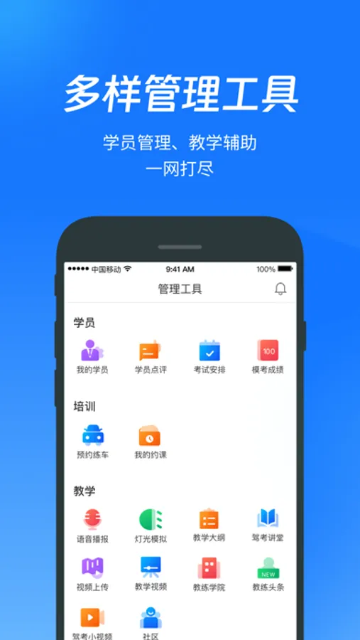 教练宝典是由驾考宝典原班人马打造的一款为驾校及教练量身定制的集招生、教学、管理为一体的全新产品,致力于真正帮助驾校及教练解决招生难题、并提高教学水平和服务质量,是广受好评的教练必备工具,驾考宝典的庞大用户量让驾校教练招生更方便简单,生源从此不用愁!