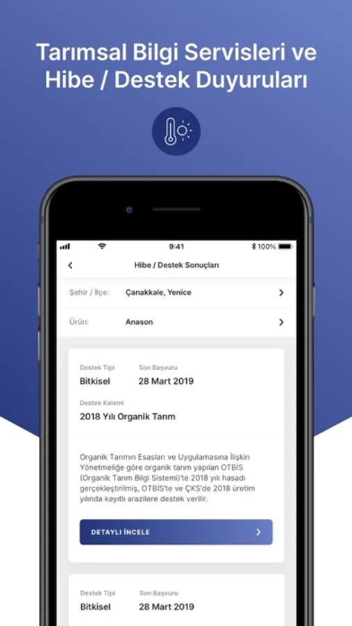 Gübre, mazot, ilaç, hâl/borsa fiyatları gibi bilgi servislerinden yararlanabilir, hibe/destek duyurularından anlık olarak haberdar olarak planlamalarınızı bu doğrultuda yapabilir, yıllık kuraklık ve risk (dolu,yıldırım) raporlarına erişebilir, ürün bazlı yetiştiricilik önerilerine göz atabilir, ilaçlama saati uyarılarından yararlanarak, zamanı daha etkili kullanabilir ve uydu destekli ürün takibi ile ekinlerinizin durumunu anlık olarak takip edebilirsiniz.