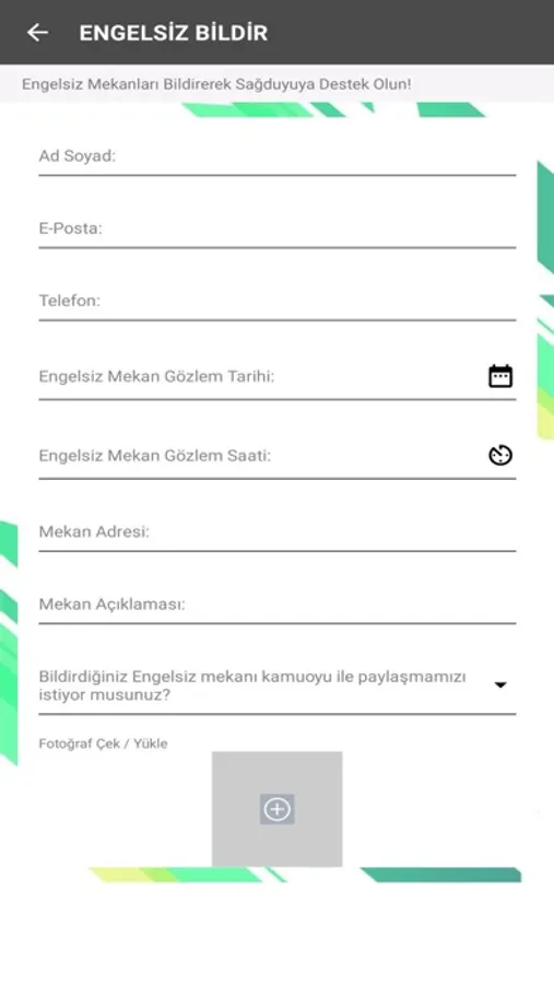 Engellilerin hayata eşit katılım hakkına saygı duyan bir toplum olmak isteyen herkes için harekete geçme, sorumluluk alma, engelleri fark etme ve bildirme zamanı. Mevlana der ki: “Kusur bulmak için bakma birine, bulmak için bakarsan bulursun.” Biz de proje yönetimi olarak diyoruz ki: İnsanlara değil ama etrafınıza kusur bulmak için bakın bundan sonra, bakarsanız mutlaka bulursunuz. Bildirirseniz çözümün parçası olursunuz.