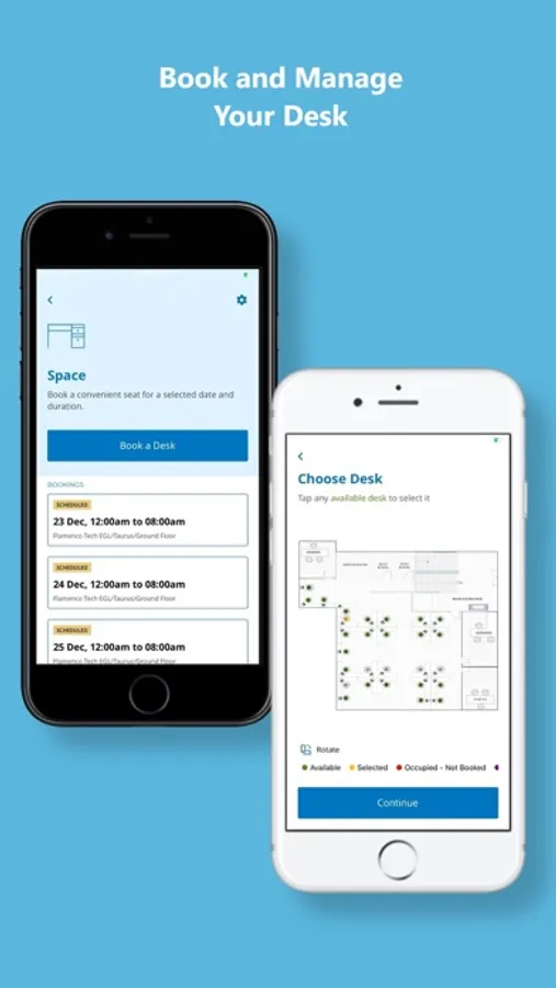 1. Desk Booking: Schedule and manage desk booking anytime, anywhere. Check desk availability and book seat for single/multiple days using the floor plan. Extend booking/ cancel booking. Book a seat near a colleague. Select seats with specific amenties.