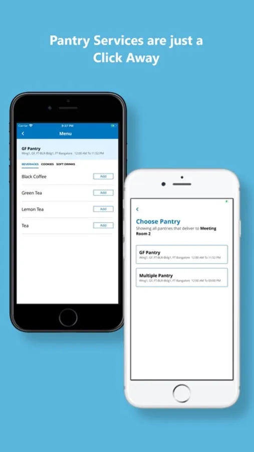 4. Pantry: Order Pantry services from enclosed area’s like meeting rooms, training rooms, etc.