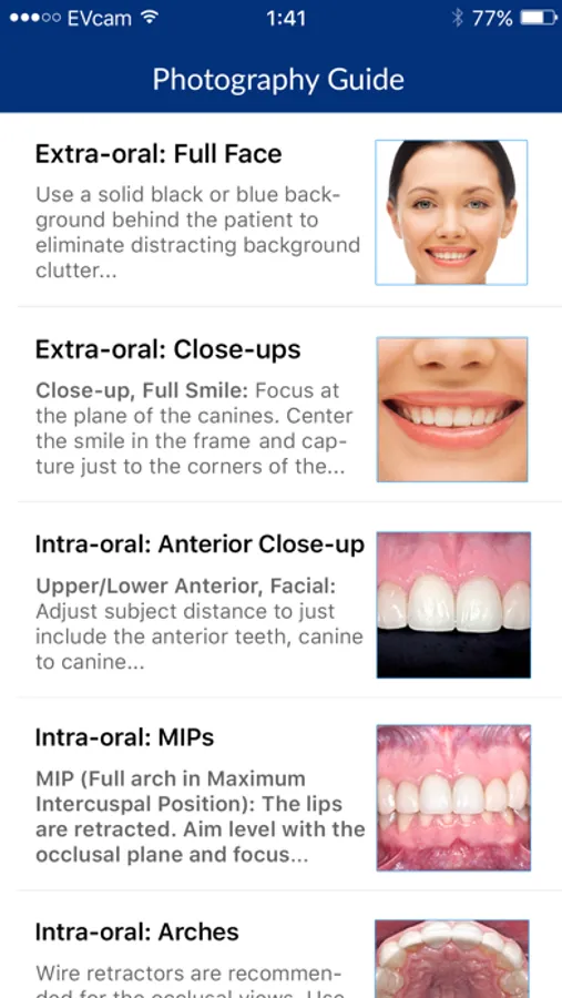 OryxCam integrates clinical photos with Oryx Software. The application helps you take extra-oral, intra-oral and lab communication photos with the help of the photography guide. No images are saved on your device, making it HIPAA complaint.