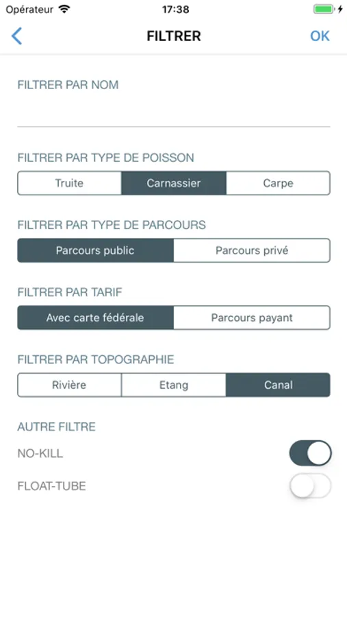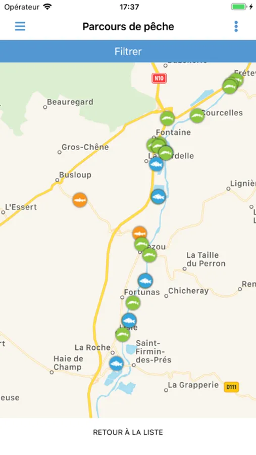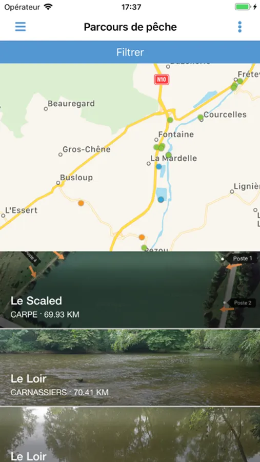This application allows the geolocation of fishing courses and all the professionals of the fishing world. Thousands of spots, fishing tackle shops, instructors, accommodations,