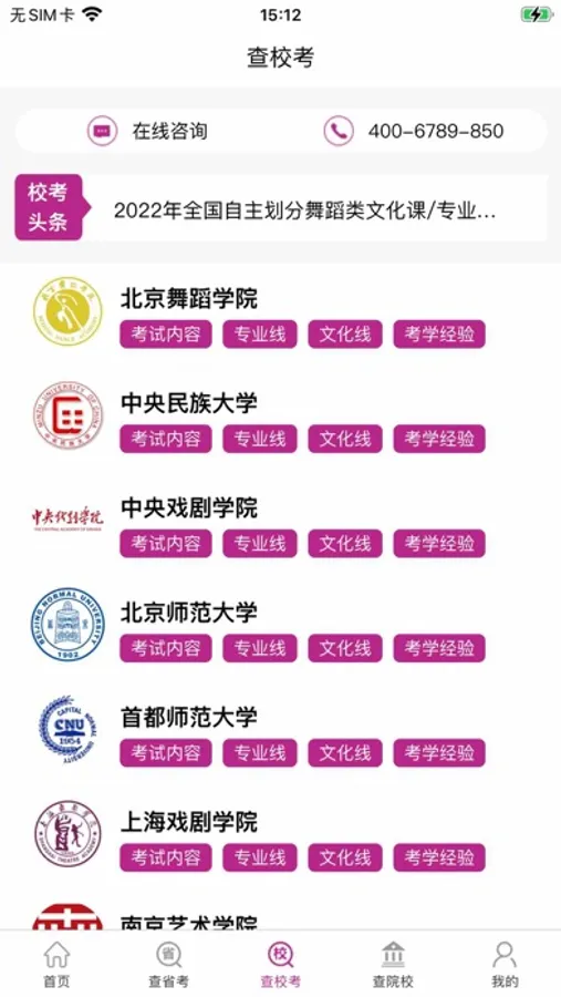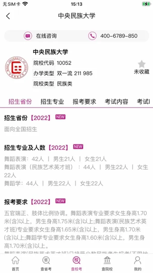 覆盖全国舞蹈大学,及时精准权威:第一时间更新全国近200所舞蹈大学重要招生信息,发布各舞蹈院校最新招生简章,招生人数、招生专业、招生省份、报考时间、考试内容及要求、分数线等,可按省份和舞种查询目标院校的详细信息,精准备考。