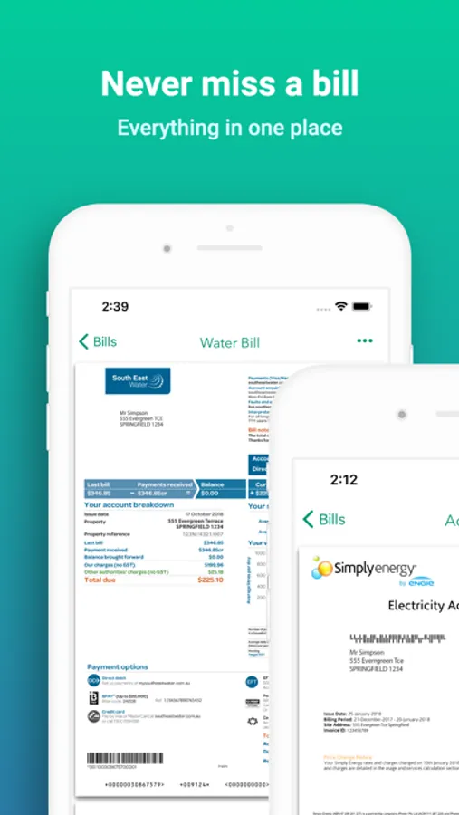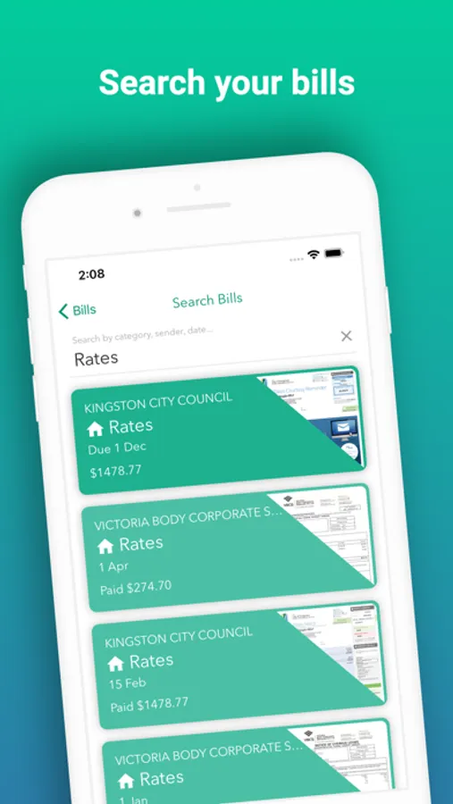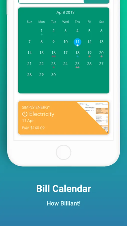 Automatically and securely, bills are detected straight from your email inbox. Smart categorisation keeps them organised while reminder notifications ensure that late fees become a thing of the past. Accessible on the go, you can search past bills and easily keep track of spending over time. Electricity, gas, internet, rego, council rates, you name it, Billiant has you covered.