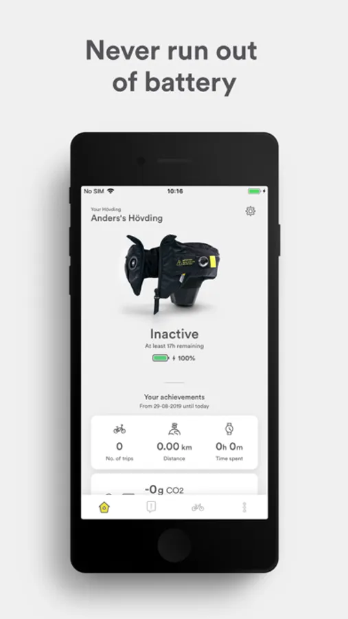 - Battery notifications: Never run out of battery again, the app reminds you to charge your Hövding.