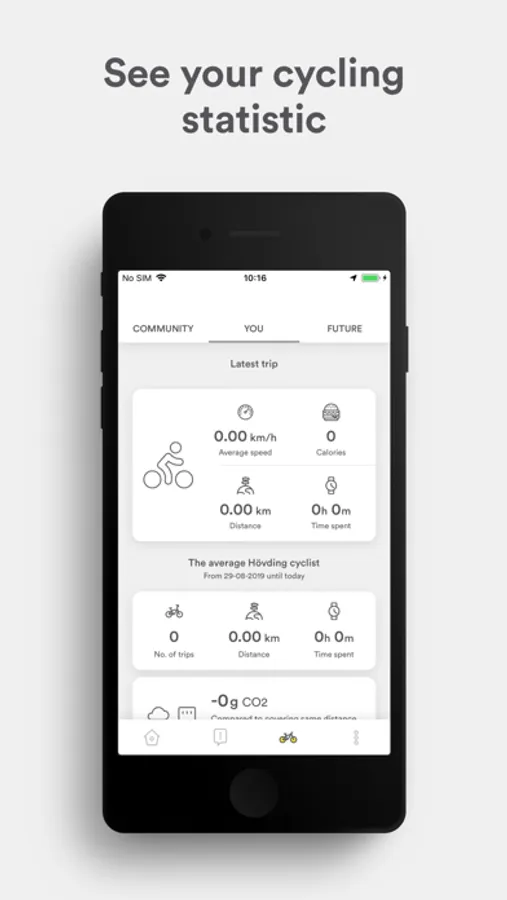 - Cycling statistics: See you personal cycling stats and achievements. Average speed, distance traveled, time spent, calories burnt and CO2 reduction.