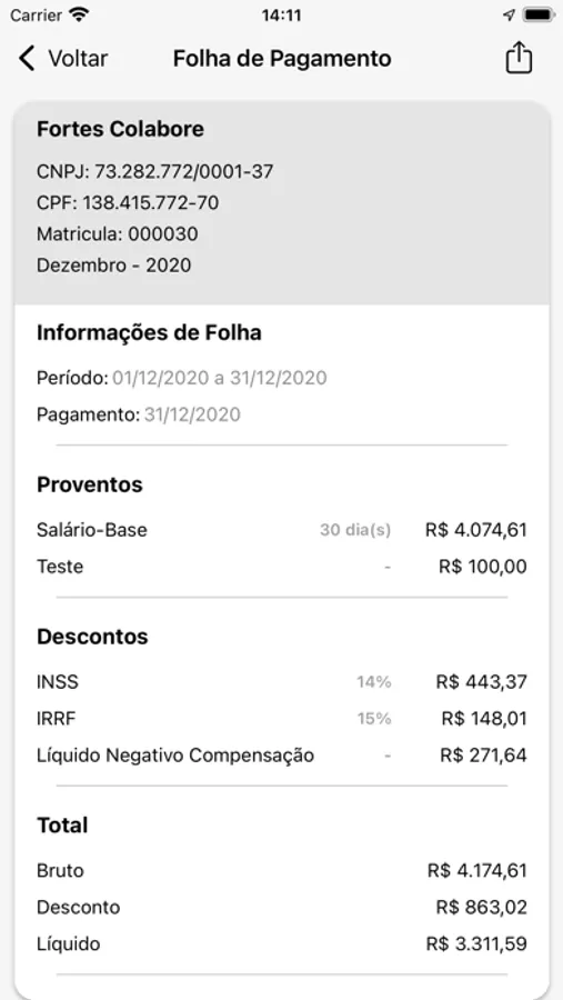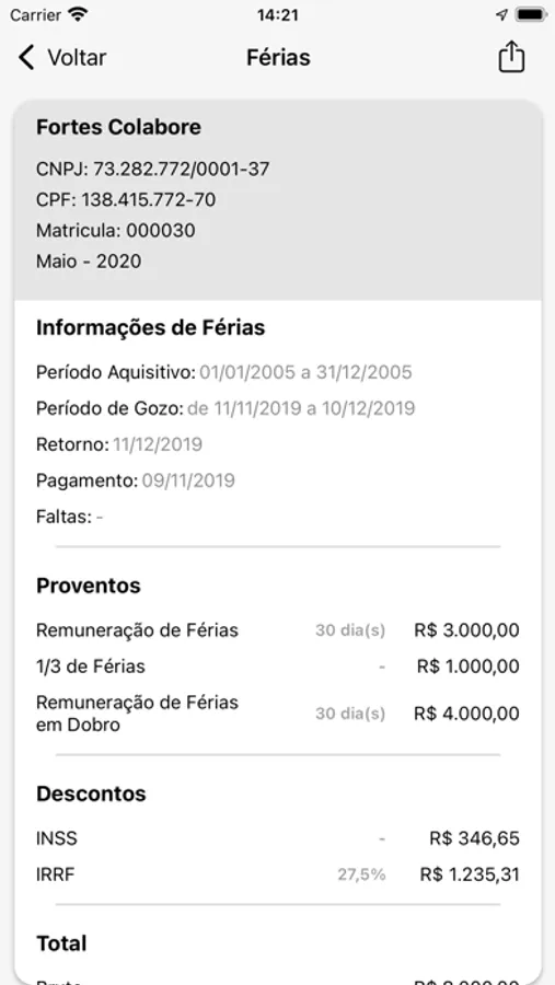 - Visualização de recibos de pagamento (Folha, Férias, 13º, etc);