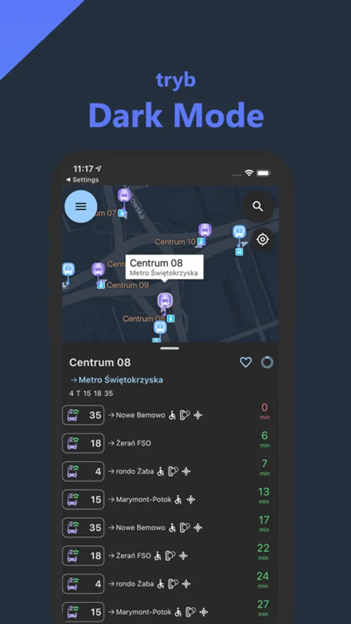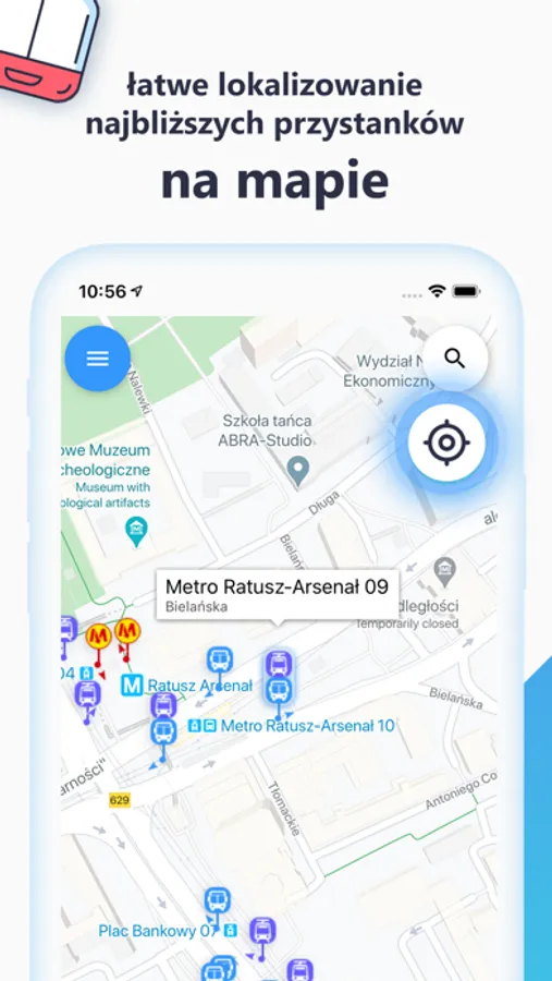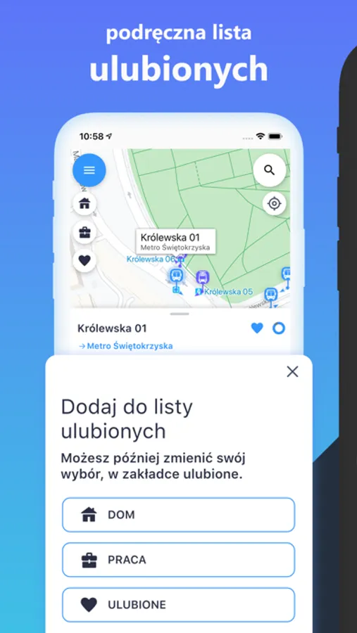 W aplikacji możesz także dodać wybrane przystanki do ulubionych, zdefiniować nazwy ulubionych przystanków oraz przydzielić je do jednej z 3 grup: