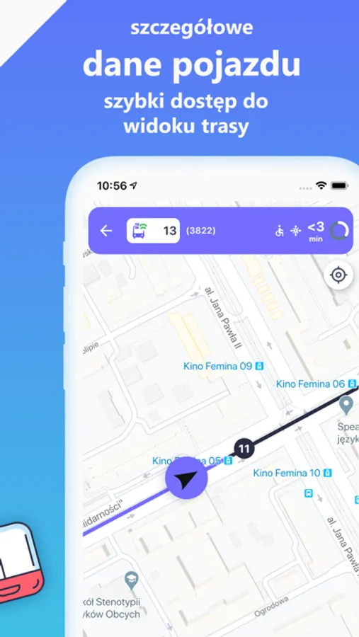 Umożliwia ona śledzenie na mapie pozycji konkretnego autobusu lub tramwaju oraz sprawdzenie dodatkowych informacji o kursie takich jak: