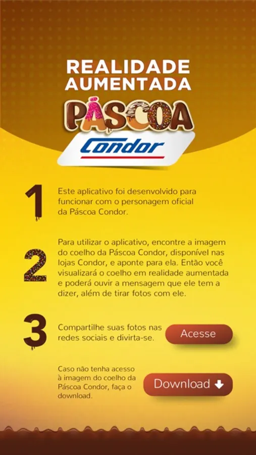 1 – Este aplicativo foi desenvolvido para funcionar com o personagem oficial da Páscoa Condor.