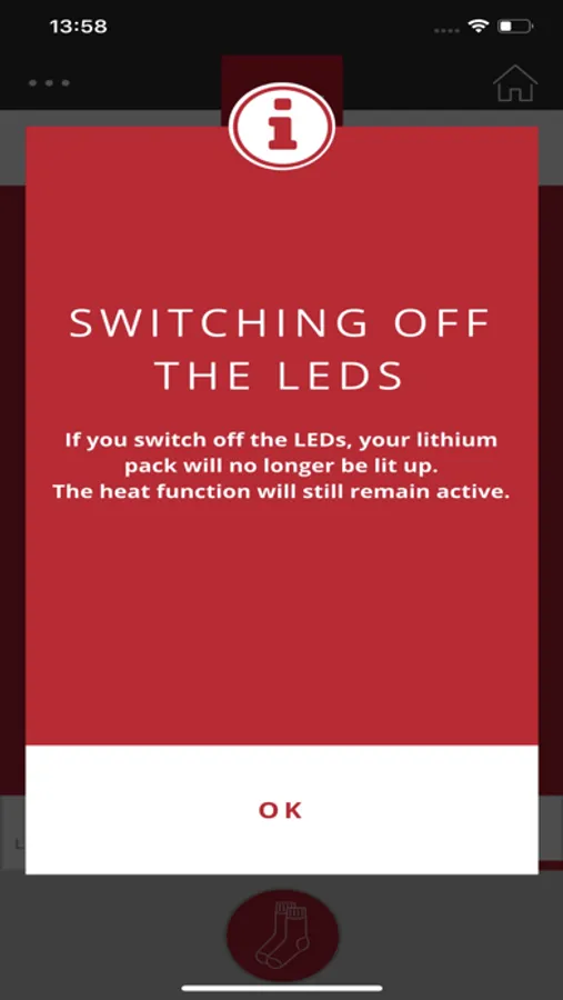 If the LEDs glow through a thin item of clothing, they can be deactivated. The heat output remains set as defined in the app.