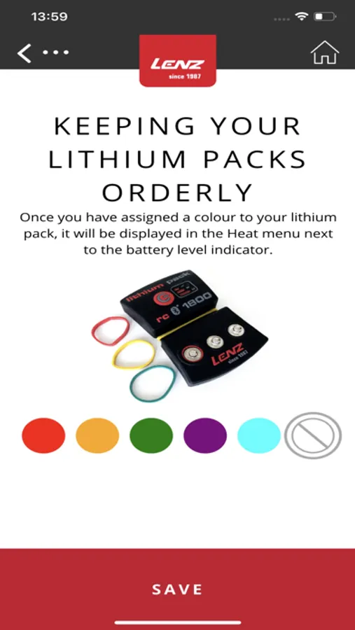 Coloured rubber rings are delivered with the lithium packs. These help you to distinguish entire “battery pairs” from each other or to distinguish the batteries that are purposely to be used on the left and on the right. You can assign the colour of the rubber rings to the batteries in the app.