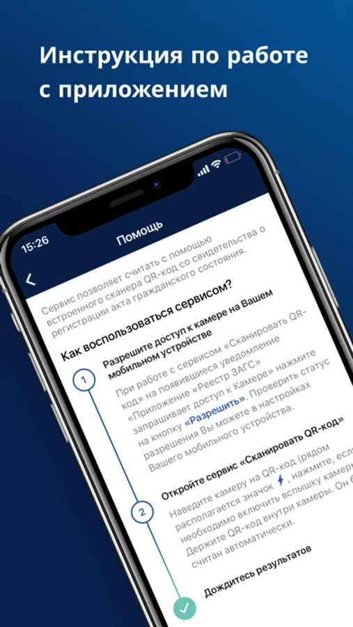 • «Сканировать QR-код» с возможностью считать с помощью встроенного сканера QR-код со свидетельства о регистрации акта гражданского состояния или с апостиля, проставленного органом ЗАГС. [*]