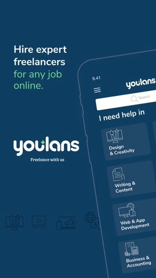 At Youlans we open the doors to freelancing for you. When it comes to getting job done Location & time doesn't matter anymore. Hire skilled professionals, and find verity of work right at the tips of your finger. Let's freelance together.