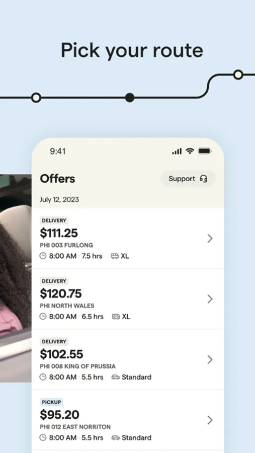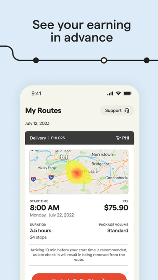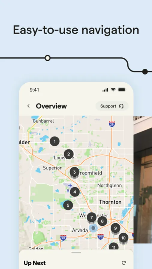Veho provides same-day and next-day delivery services for e-commerce companies. The Veho app is used by drivers to deliver packages. It allows drivers to view their route, view stops on their route, navigate to stops, select delivery method, and take photos of delivered packages.