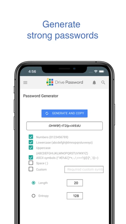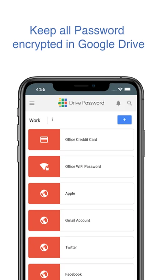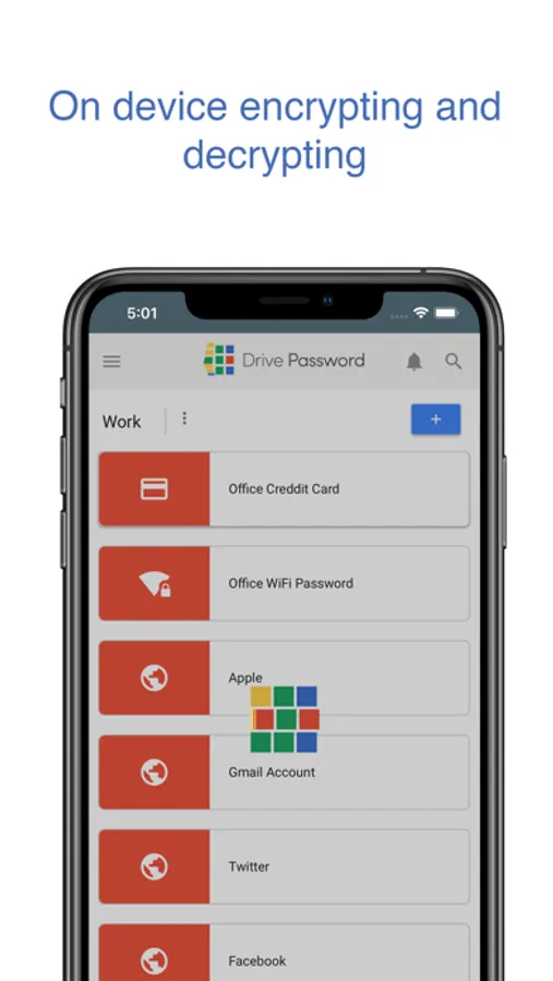 Complete control over your data - Drive Password is entirely based on Google Drive. All your information is first encrypted locally on the device and then stored in your Google Drive.